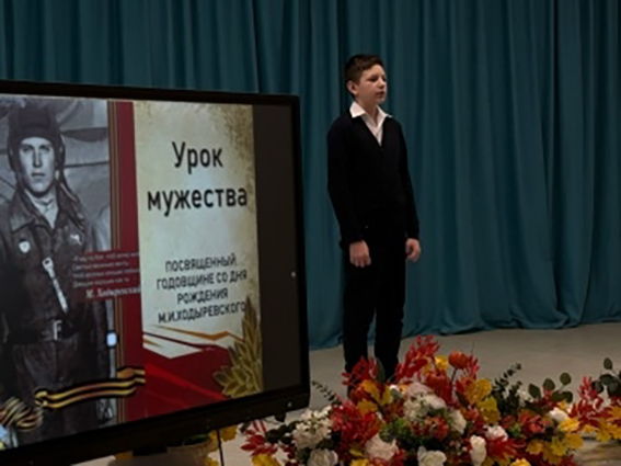 В МБОУ "Полянская СОШ" прошёл Урок мужества, приуроченный ко дню рождения Михаила Ивановича Ходыревского.