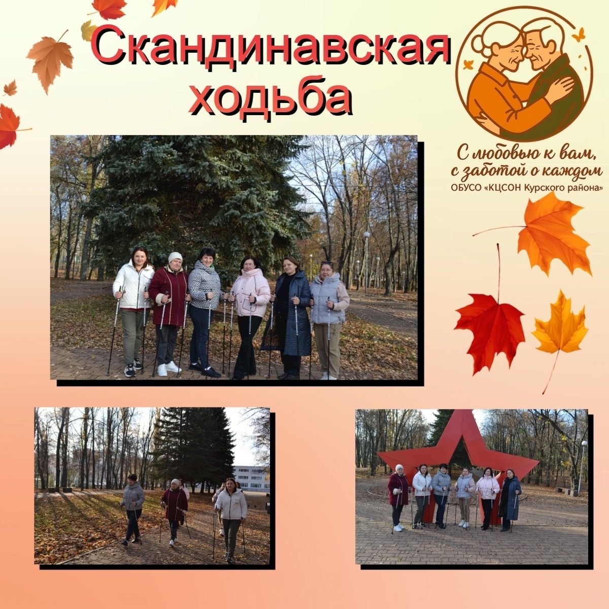 В ОБУСО «КЦСОН Курского района» в ноябре прошло очередное занятие по скандинавской ходьбе